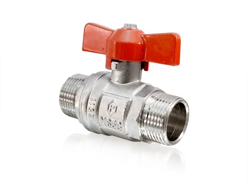 Kugelhahn 3/4" AußengewindeMessing vernickeltzum Absperren der Wasserleitungmit Flügel aus Metall, rot3/4" AG x 3/4" AG